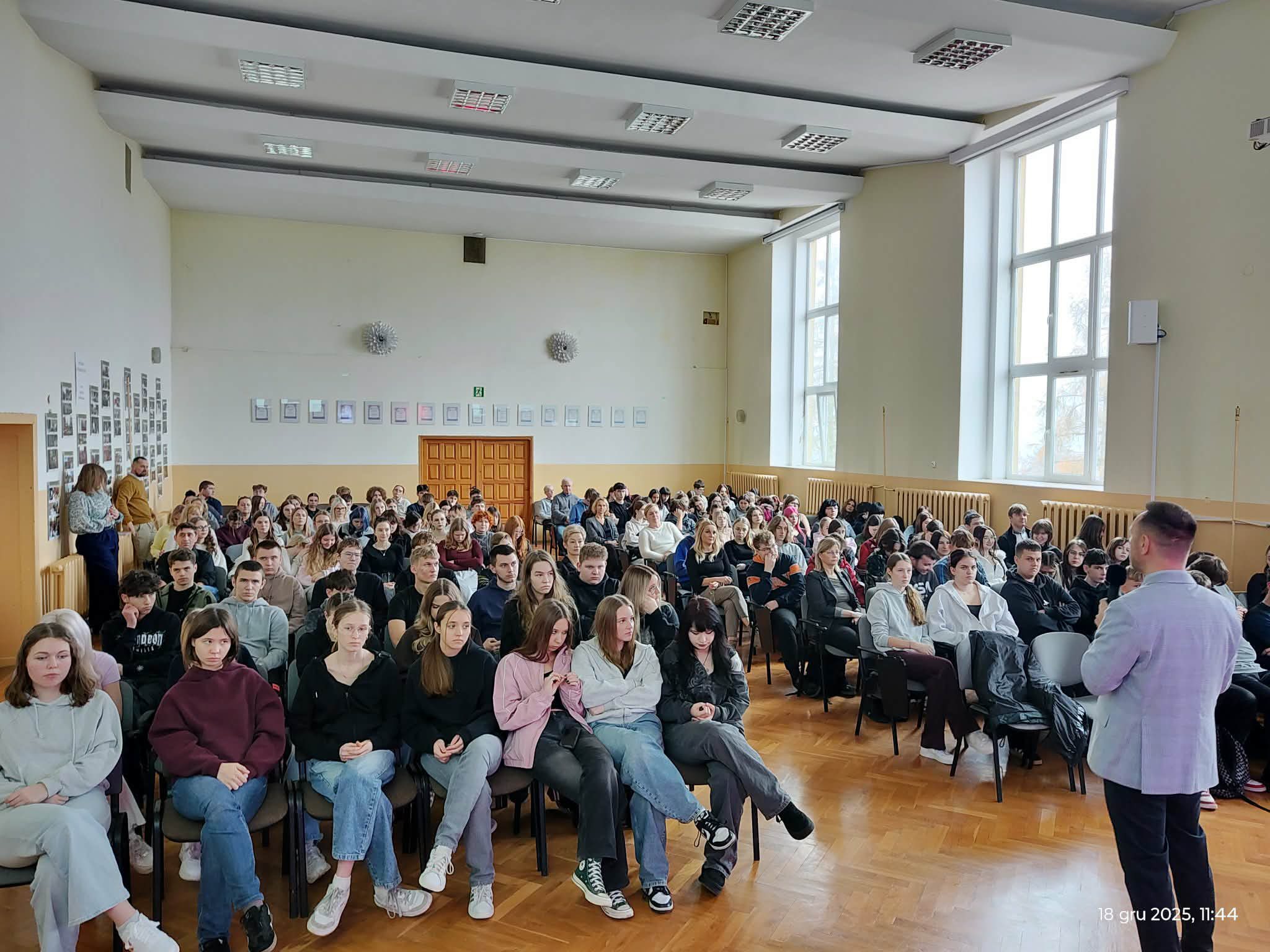 15 grudnia 2025 r. odbyło się spotkanie klas 3 c1 i 3 c2 branżowej szkoły oraz klas 5 A i 5 G technikum z sierżantem Tomaszem Kopiczko i szeregowym Natalią Szarnecką 44 Batalionu Lekkiej Piechoty w Ełku.
