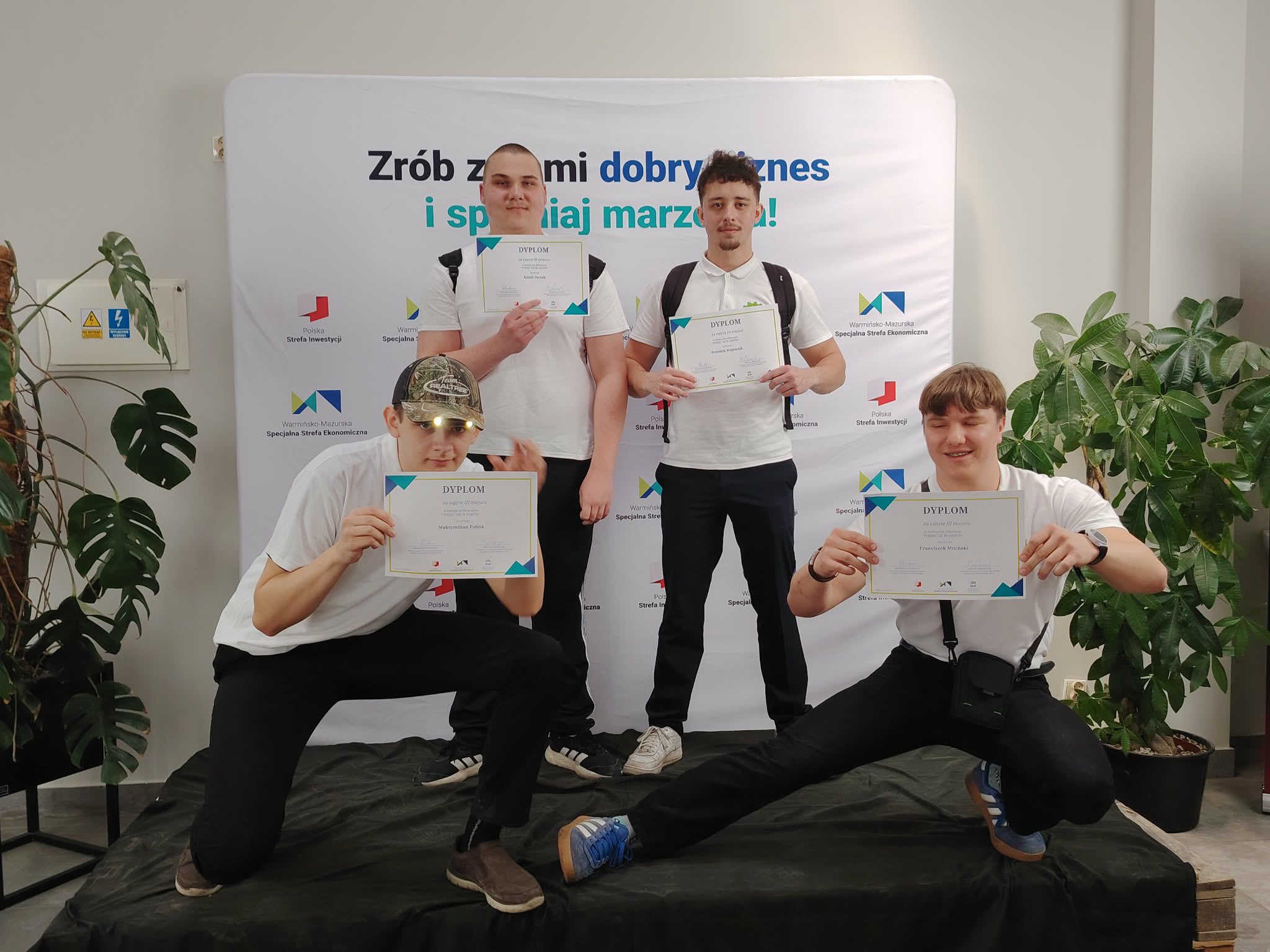 Uczniowie 3 klasy technikum przemysłu jachtowego: Franciszek Miziński, Maksymilian Polink, Kamil Pęczek, Dominik Wojewnik zajęli 3 miejsce w filmowym konkursie „Wkręć się w zawód”.
