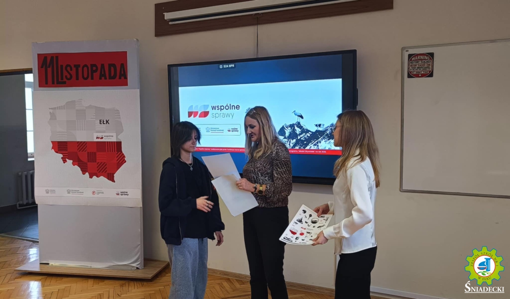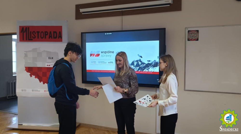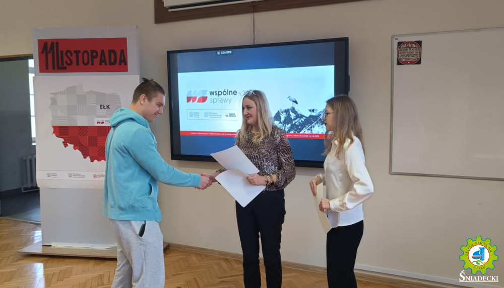 W dniu 25 listopada 2025 roku uroczyście wręczono podziękowania uczniom Śniadeckiego za udział w spotkaniu obywatelskim w ramach realizacji ogólnopolskiego programu "Wspólne Sprawy".