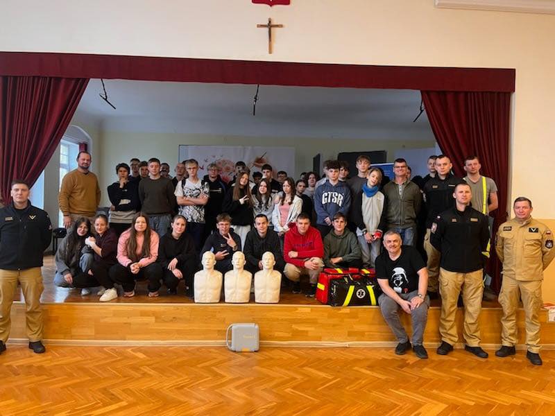 Dzięki uprzejmości Komendy Powiatowej Państwowej Straży Pożarnej w Ełku w naszej szkole w dniu 17 listopada odbyło się szkolenie z udzielania pierwszej pomocy przedmedycznej.
