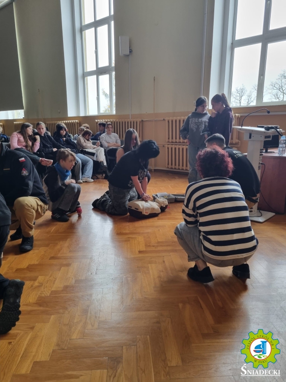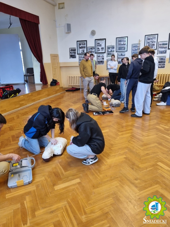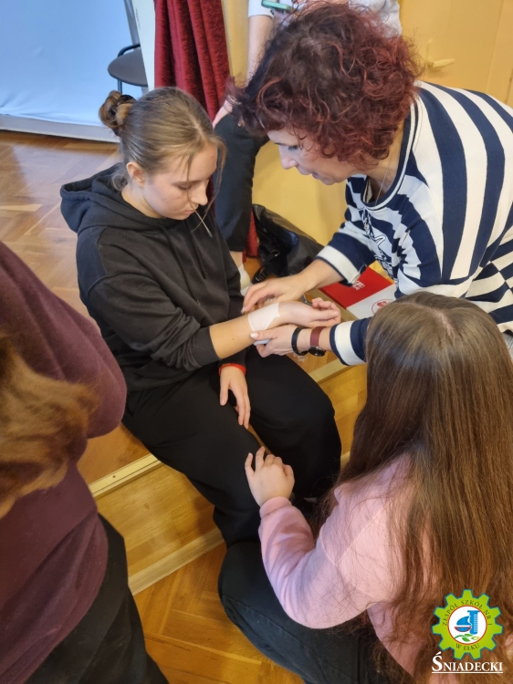 Z inicjatywy p. Grzegorza oraz z pomocą p. Joli, p. Karoliny i p. Kamila uczniowie poznawali tajniki pomocy poszkodowanym. Od pierwszej chwili uczniowie z klasa 1B i 1 AG, aktywnie uczestniczyli w zajęciach.