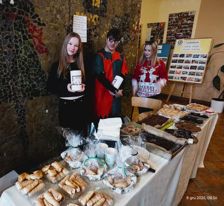 Samorząd Uczniowski zdecydował, że dochód z akcji wesprze Rodzinę Państwa Piątkowskich, która odbudowuje gospodarstwo po pożarze. Uczniowie, nauczyciele i pracownicy szkoły przygotowali ciasta, ciasteczka, ozdoby świąteczne oraz rękodzieło.