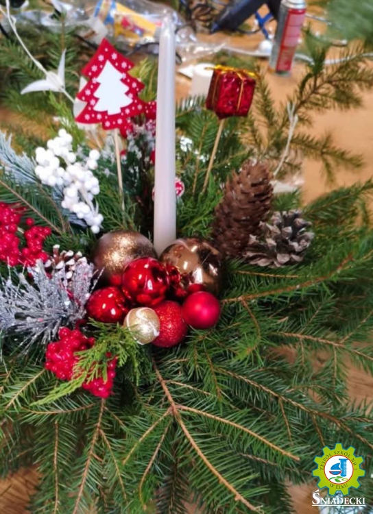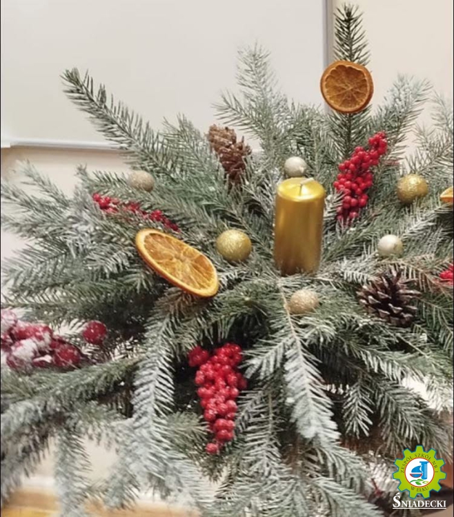 Stroiki widoczne na zdjęciach wykonali chętni uczniowie klas branżowych podczas warsztatów przeprowadzonych 5 grudnia przez panie z MCK OHP Ełk. W programie Mikołajek znalazły się również: sesje zdjęciowe z Mikołajem, teleturniej mikołajkowy dla drużyn z klas pierwszych i drugich, mecz piłki nożnej uczniowie–nauczyciele zakończony remisem 3:3, mikołajki klasowe z wymianą prezentów, m.in. w klasach 1 P/T i 3 AN.