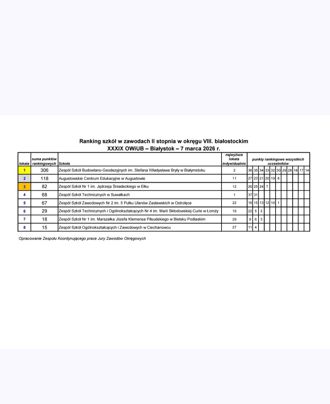Nasi uczniowie zaprezentowali się na dobrym, wyrównanym poziomie i w rankingu szkół biorących udział w eliminacjach okręgowych zdobyli III miejsce.