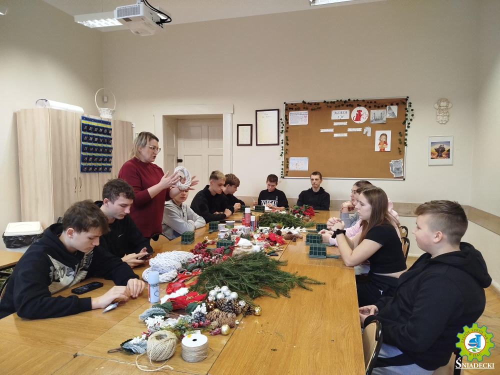 5 grudnia 2025 roku w naszej szkole odbyły się warsztaty podczas których uczniowie nauczyli się jak własnoręcznie wykonać świąteczny stroik.