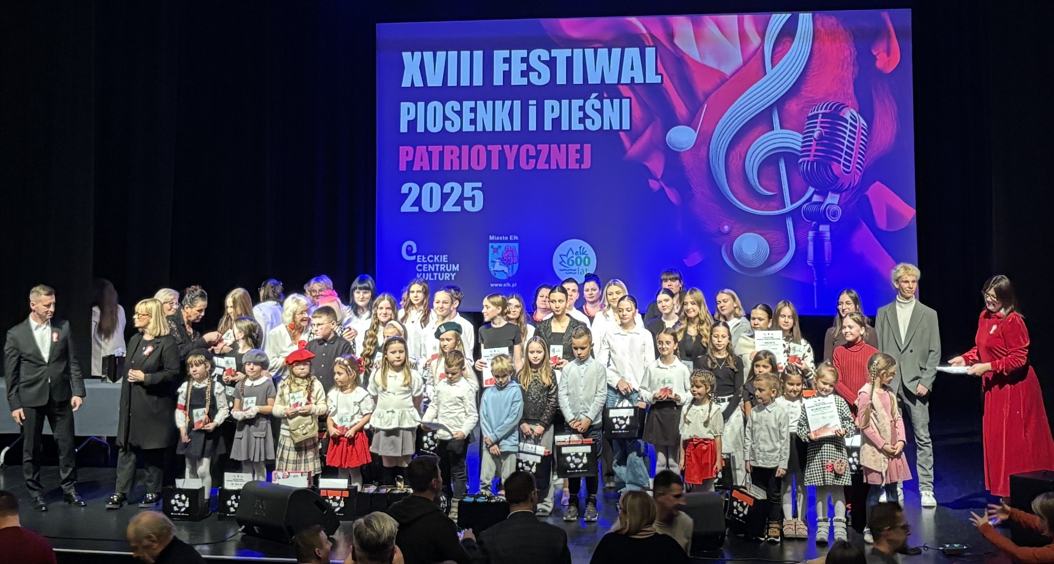 W Dniu Niepodległości – 11 listopada 2025 r., o godz. 17:00 w Ełckim Centrum Kultury – odbył się finał XVIII Festiwalu Piosenki i Pieśni Patriotycznej. Nasz „Chór Śniadeckiego” (tym razem w składzie 28 uczniów) zaprezentował poruszający utwór „Ziemia Zapomniana.”